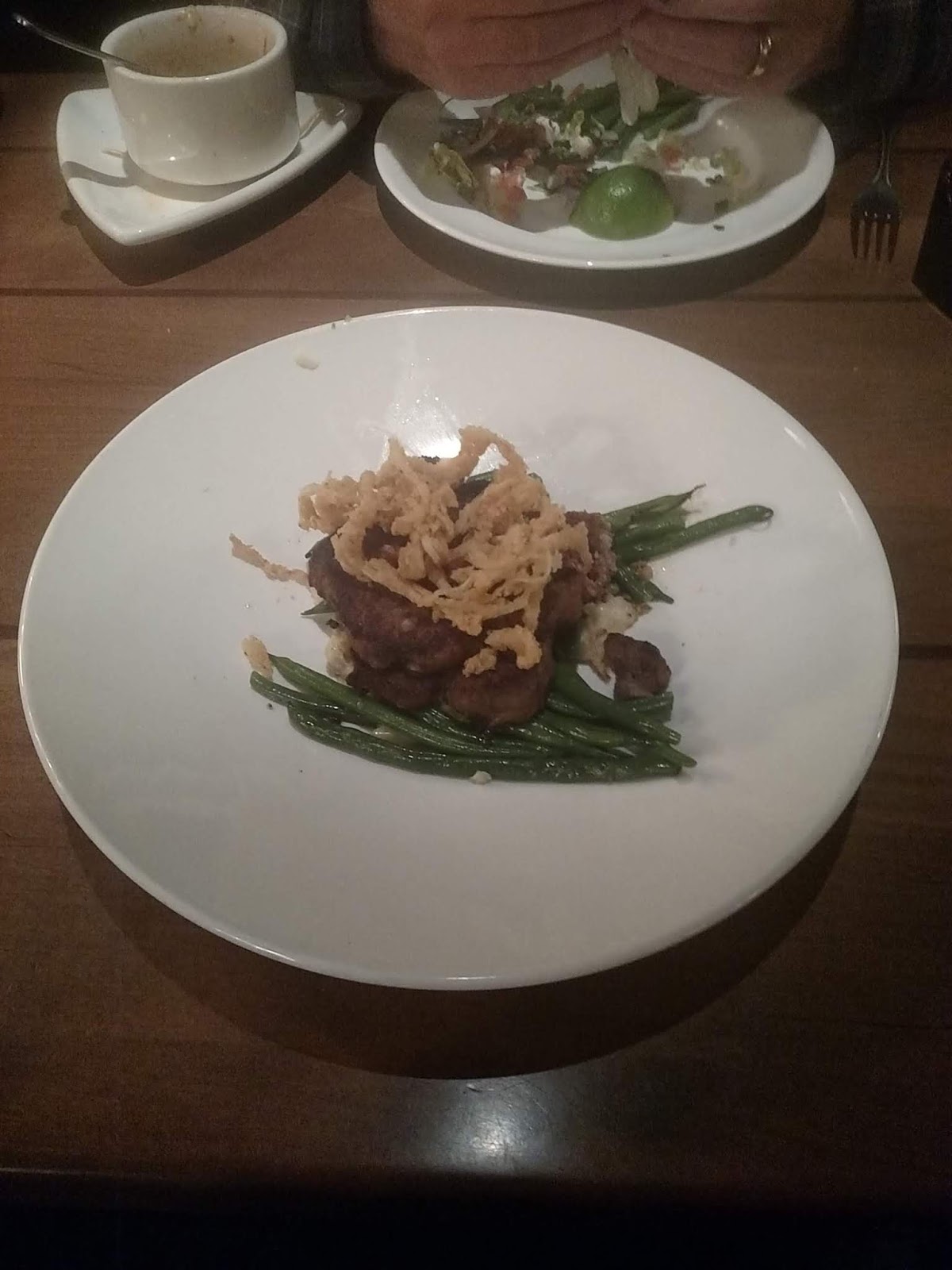 They gladly reduced the portion of mashed potatoes in favor of more garlic green beans. The crispy onions were a pleasant surprise.